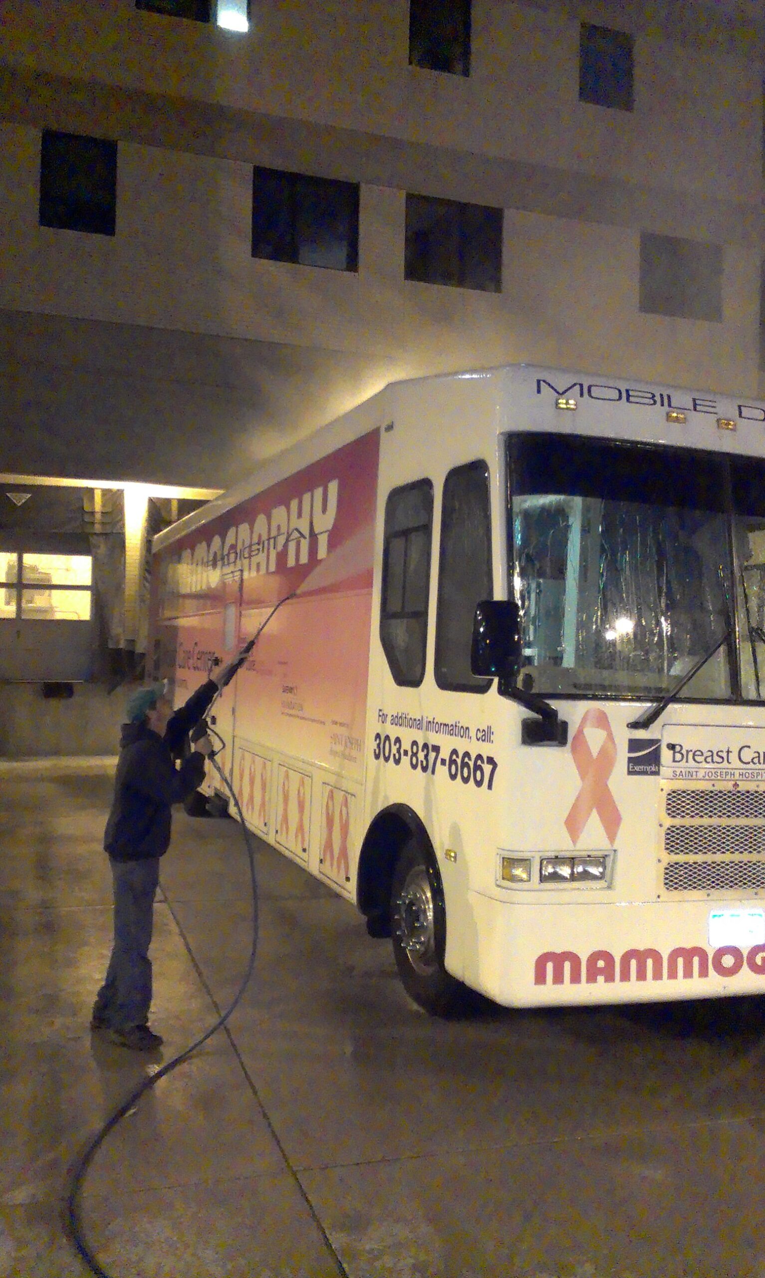 Their mammography van was scheduled to be featured on television the next day for the start of Breast Cancer Awareness Month. Unfortunately, it was out doing it’s normal rounds during the day and wouldn’t be back until late. They wanted to get it clean and shiny for the appearance on television.