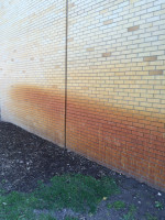 The Town of Parker needed our building pressure washing service after they cut down some bushes and exposed a rust stained brick wall.