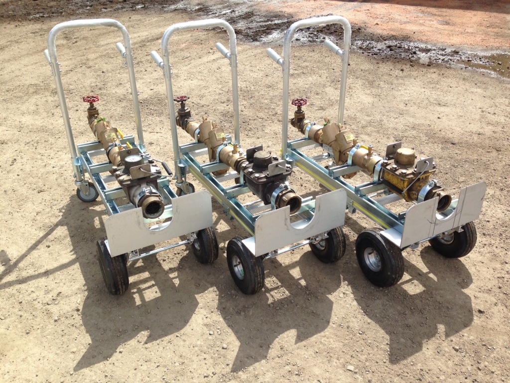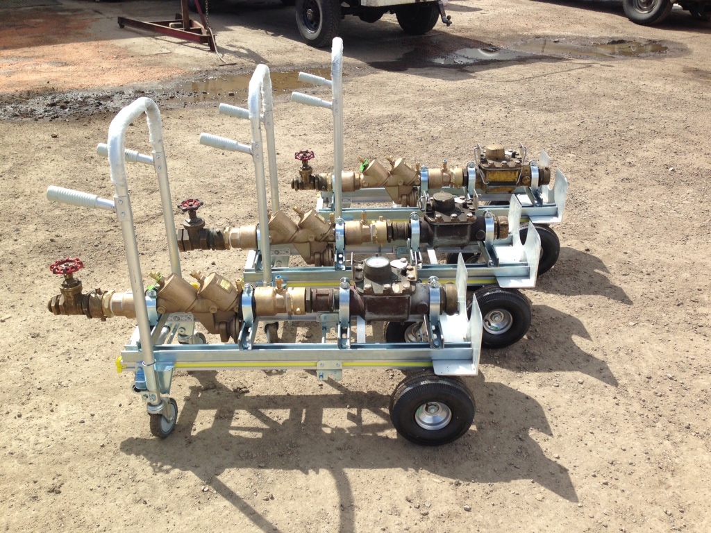 backflow pressure assemblies and hydrants mounted on custom carts