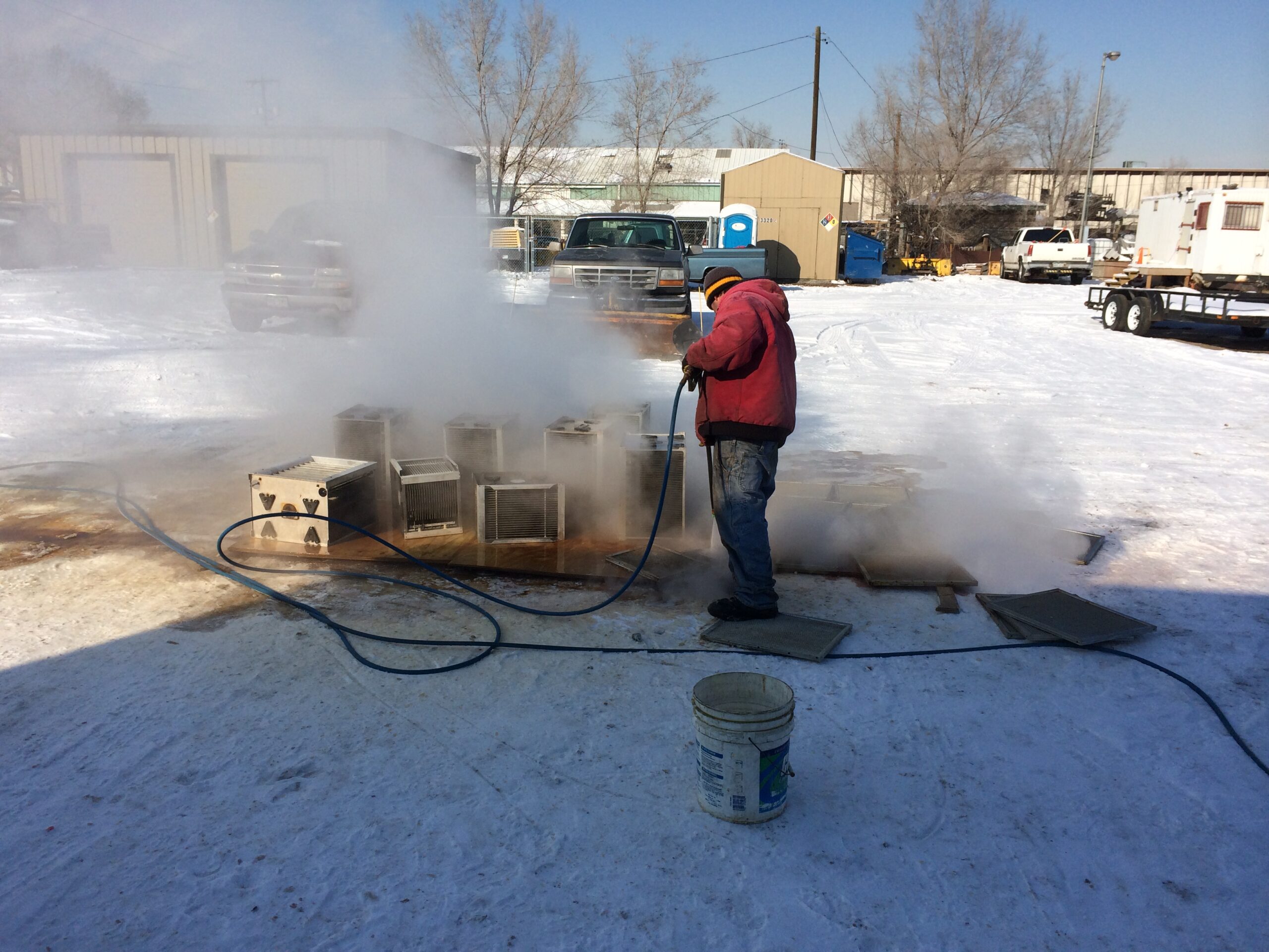 But this time, he brought them to us when temperatures were staying well below freezing – and he needed them cleaned that week. Fortunately, we had some of our crews in the shop working on our equipment.